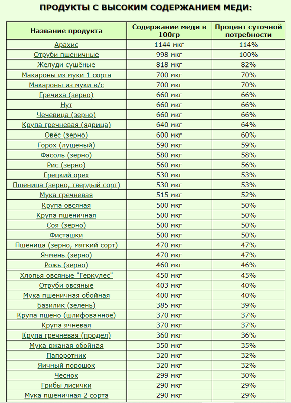 Медь в питании какие продукты содержат достаточное количество микроэлемента